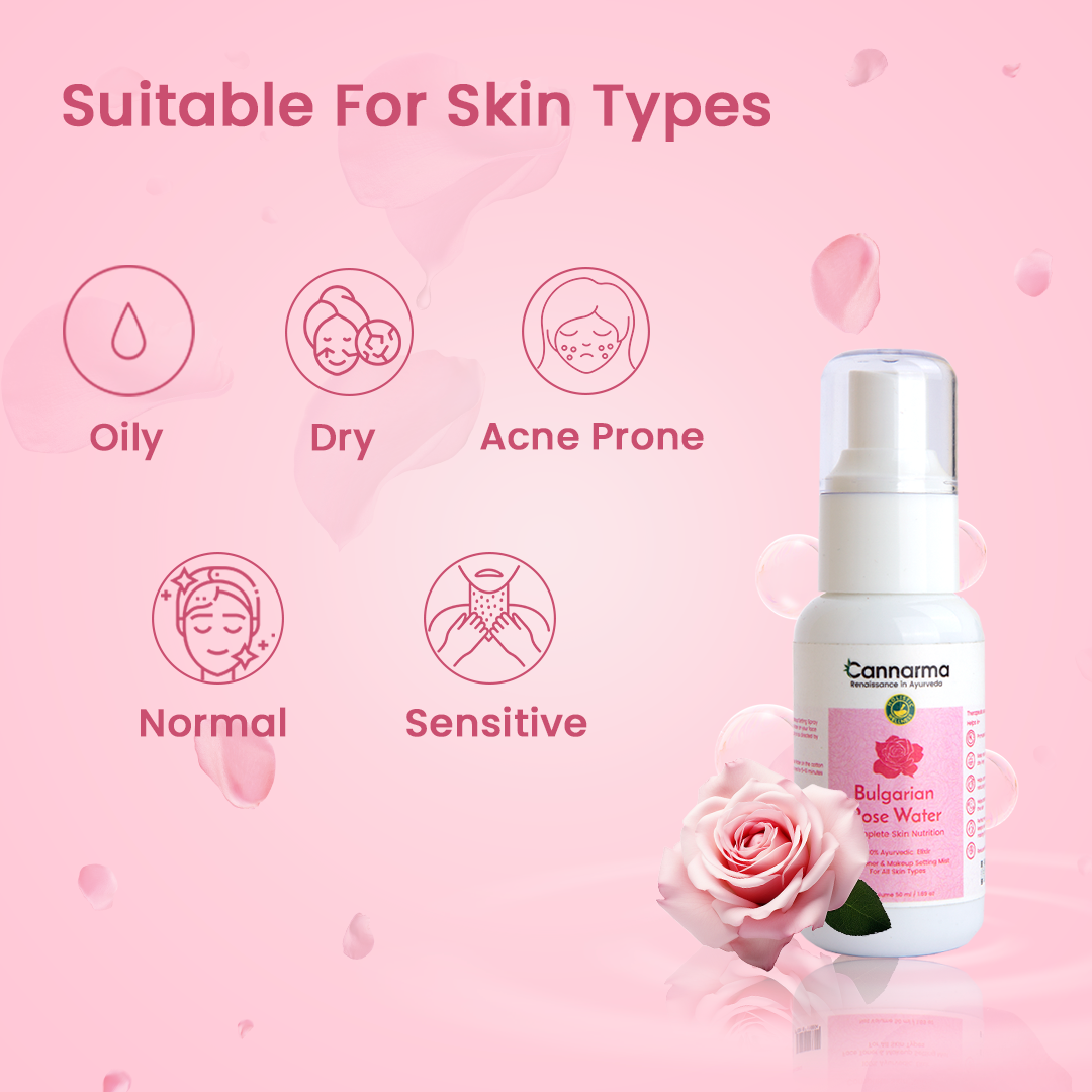 Cannarma Bulgarian Rose Water – Complete Skin Nutrition, handpicked before sunrise and bloomed by direct steam distillation immediately after harvesting, for hydrated, revitalized, and moisturized skin. Rich in antioxidants, it strengthens skin cells, regenerates skin tissues, and maintains pH balance while controlling excess oil.