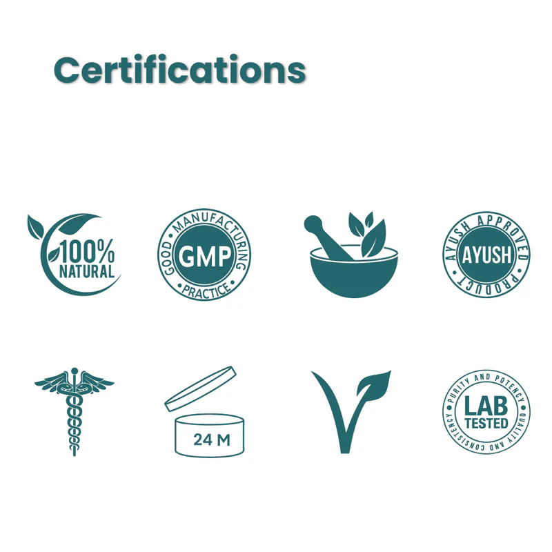 • GMP certified facility ensures the highest quality standards in production, developed and approved by a team of experts including researchers, biologists, Ayurveda practitioners, doctors, and pharmacists.