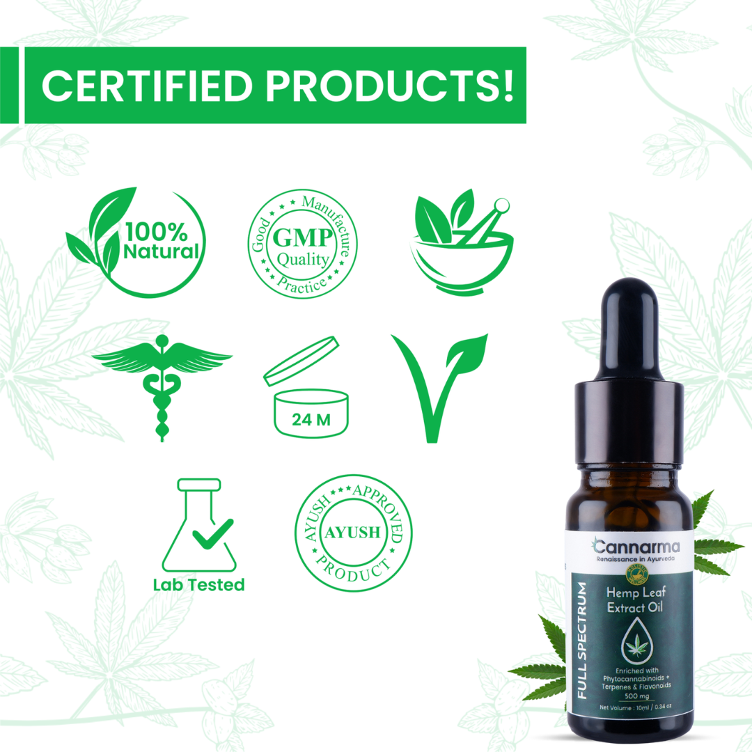 Cannarma combines ancient Ayurvedic practices with modern research and technology to produce holistic hemp oil. Our ULTRA PREMIUM HEMP OIL preserves the plant’s full spectrum of phytocannabinoids, terpenes, and flavonoids, ensuring enhanced absorption and the entourage effect without any chemicals or solvents. Endorsed by a board of scientific experts, our therapeutic-grade formula aims to provide the best of nature and science for your well-being.